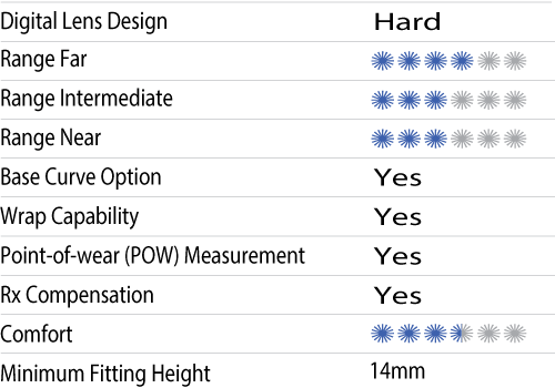 Inscribe Sport provides significantly improved far vision while maintaining near and intermediate vision quality. It is a great solution for people who spend more time outdoors or people who need a very good far vision. It offers panoramic far visual field allowing users to indulge in outdoor activities like enjoying landscapes, sport actions, scenic drives and viewing movies in the cinema.